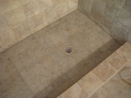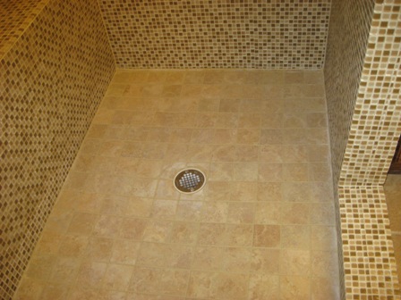 Shower with 1/2" mosaic glass wall tile, 10/2009 (Plano) |